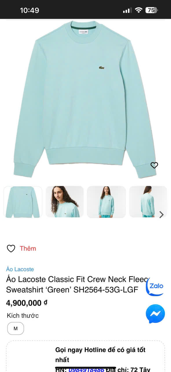 Áo Sweater Màu xanh ngọc, dòng nỉ gai mềm.