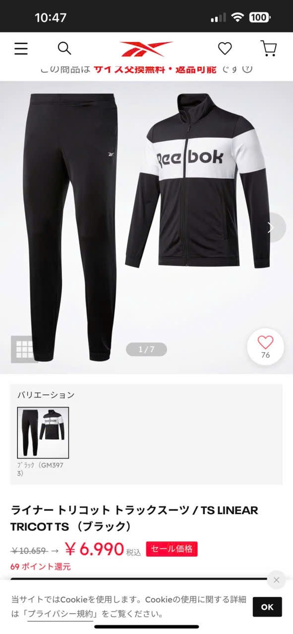 Bộ thể thao Reebok hàng xách tay