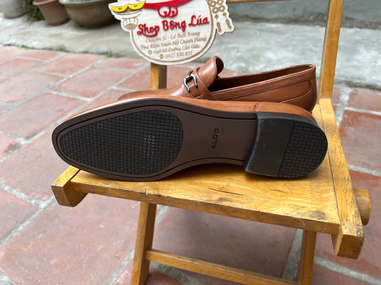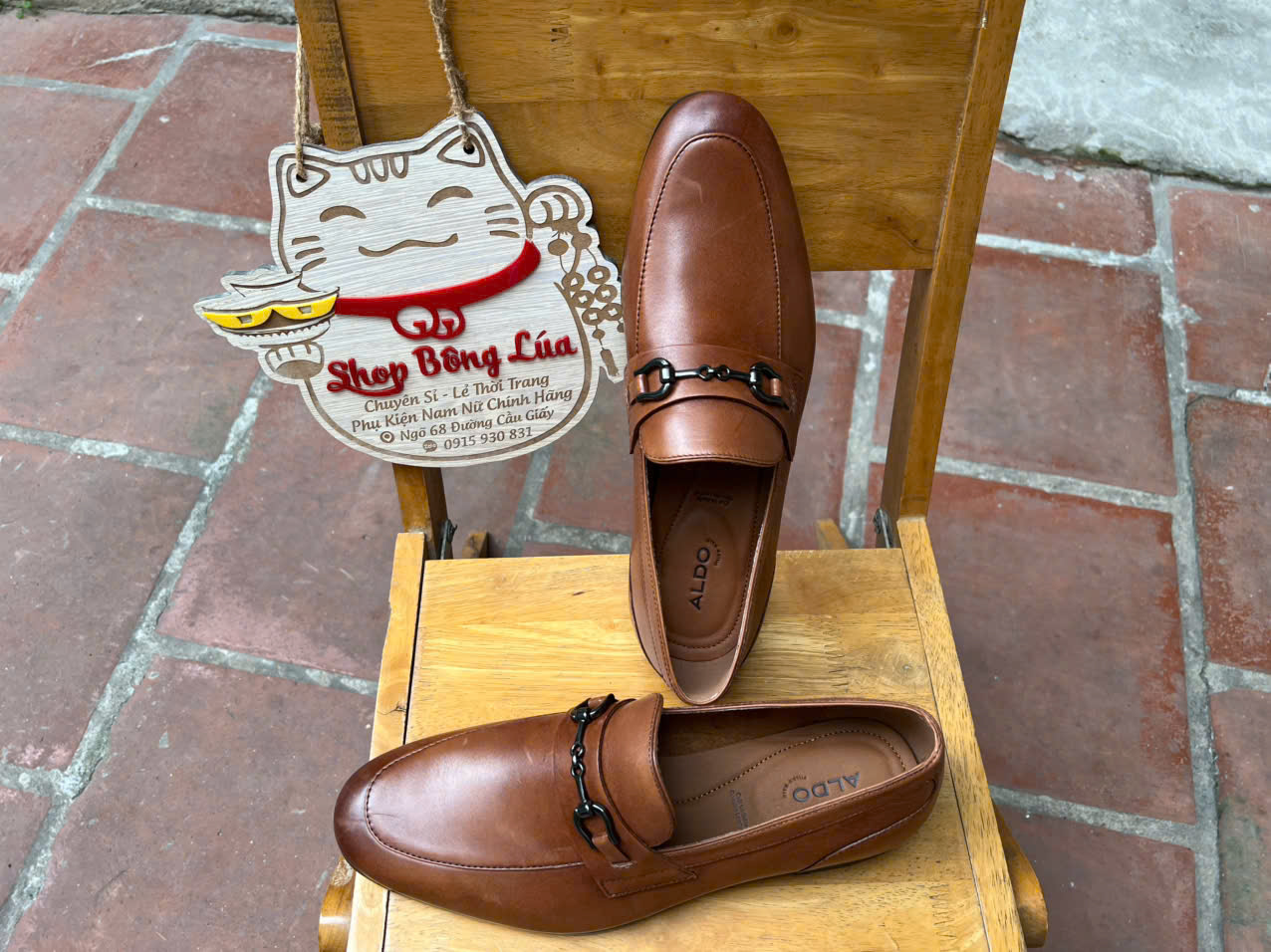 Giầy Lofer Aldo da nhẵn, màu nâu đai đen, form gọn cho chân mỏng, full da thật toàn bộ cả trong và ngoài, cả lót cũng da thật.